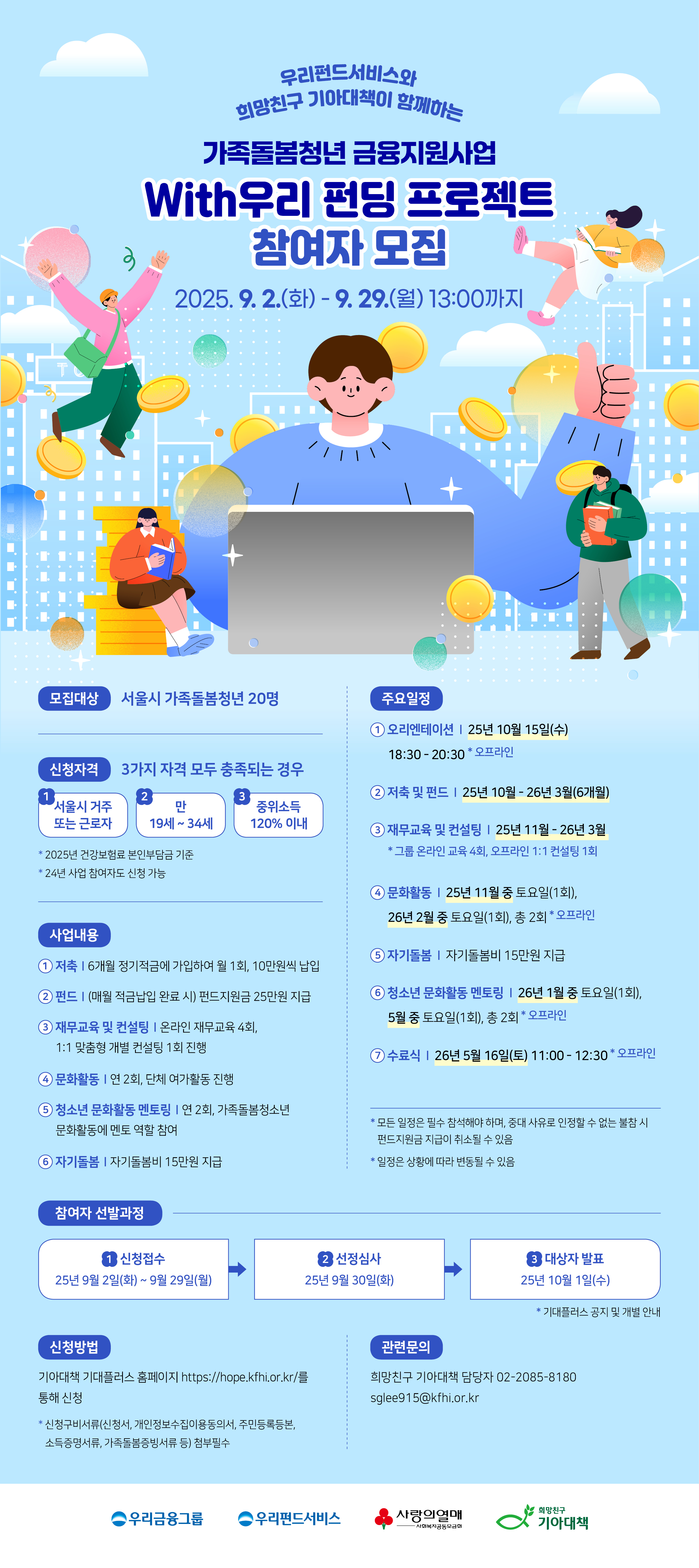 ‘With우리 펀딩 프로젝트’는 우리펀드서비스와 희망친구 기아대책이 공동주관하여 가족돌봄청년이 재무역량을 강화하고,